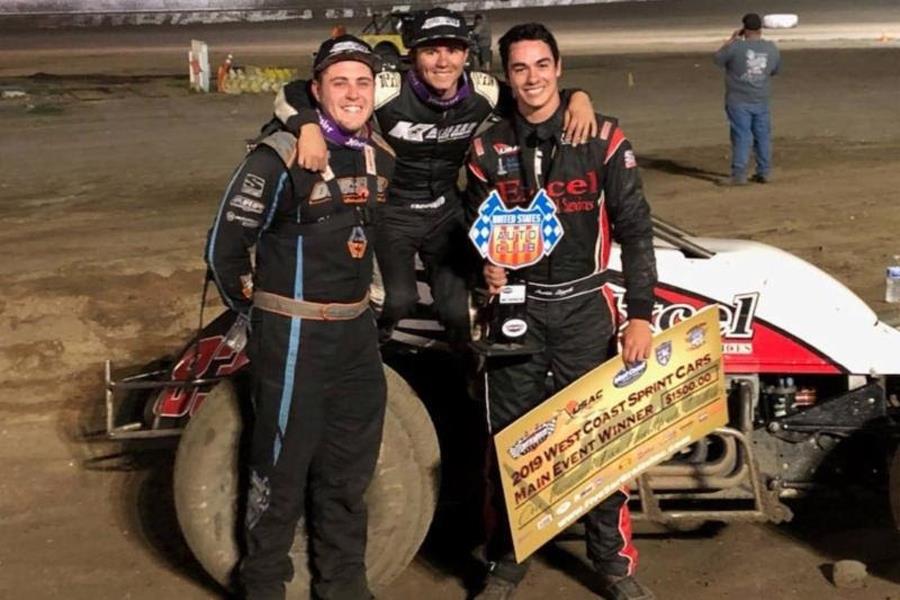 By USAC Media (Santa Maria, CA) -- After winning the companion USAC Western States Midget feature at Santa Maria, Austin Liggett (Tracy, CA) scored his first USAC West Coast Sprint Car victory of 2019. Driving the family owned #83 Excel Environmental Services / Liggett Trucking Maxim, Liggett claimed his eighth career win over fast qualifier Michael Faccinto, Tristan Guardino, Kaleb Montgomery, and J.J. Ringo.