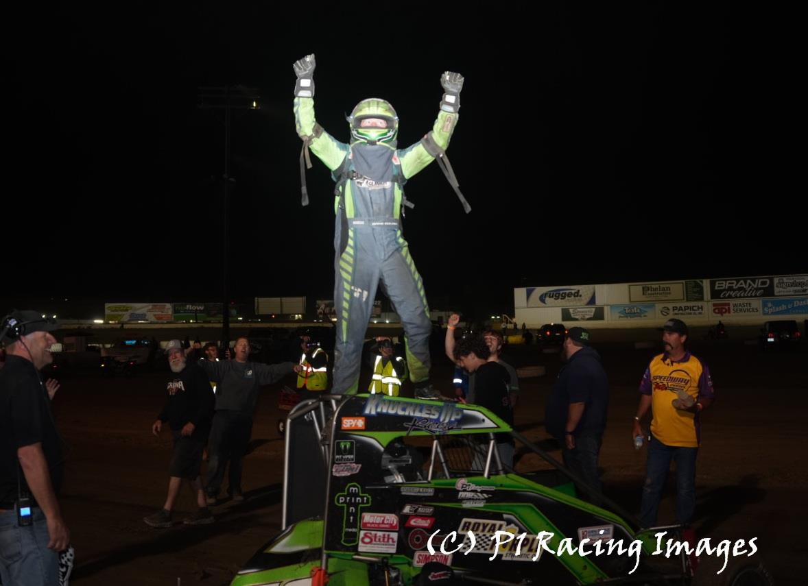 USAC Western States Midgets had a strong showing of nineteen cars checked in for the $2,000 to win Surecan Showdown. The night started with Goleta’s David Gasper qualifying quick time with a lap time of 13.939. TJ Smith and Jett Yantis were heat race winners. Seventeen cars took the green flag for thirty laps. Series’ points leader and recent victor of Santa Maria, Caden Sarale, took the early lead and looked as if he would continue his perfect streak of victories on the Coast. Young Dane Culver thought otherwise though. The Riverside native found a line in turns one and two and slid his way to the lead on lap twenty-six, pulling away for his first career USAC Western States Midgets victory. Sarale crossed the line second with Gasper, Jake Andreotti and Jett Yantis completing the top-five.